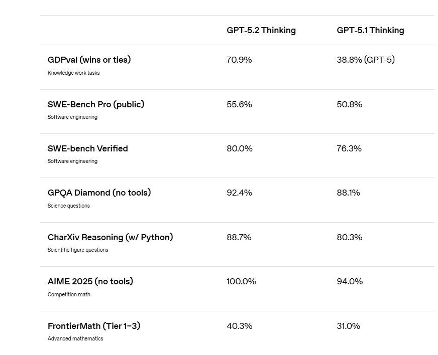 In tests such as GDPval, which measures performance on practical work tasks across 44 professions, GPT-5.2 achieved a new state-of-the-art score, completing work like presentations, spreadsheets and analytical reports much faster and more accurately than previous models.